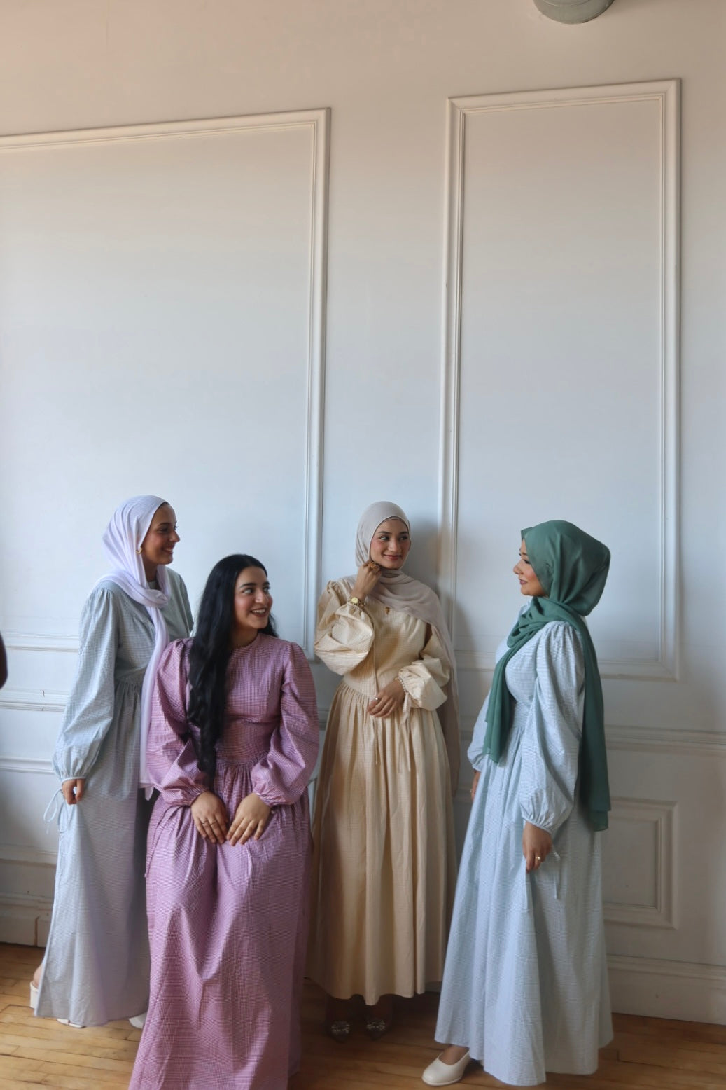 Gingham Collection is crafted from 100% cotton gingham — a natural, breathable fabric chosen with intention for comfort and everyday wear. Featuring a dropped waist silhouette, this dress is designed with functional pockets and tie-sleeve details. It’s made without belts, giving you a relaxed yet elegant fit that feels as good as it looks.